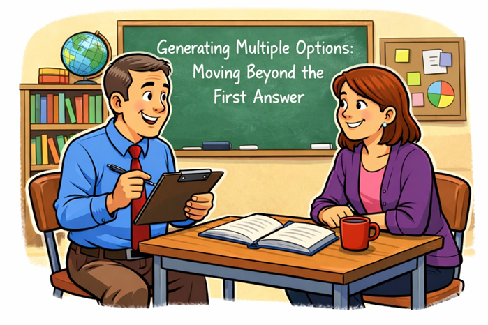 In schools, this often sounds like a quick fix. A behaviour issue leads to a standard consequence, a parent concern leads to reassurance, and a teacher development conversation leads to a single piece of advice. Each of these responses may have merit, but they are often limited because they are based on the first available idea rather than the best possible one.